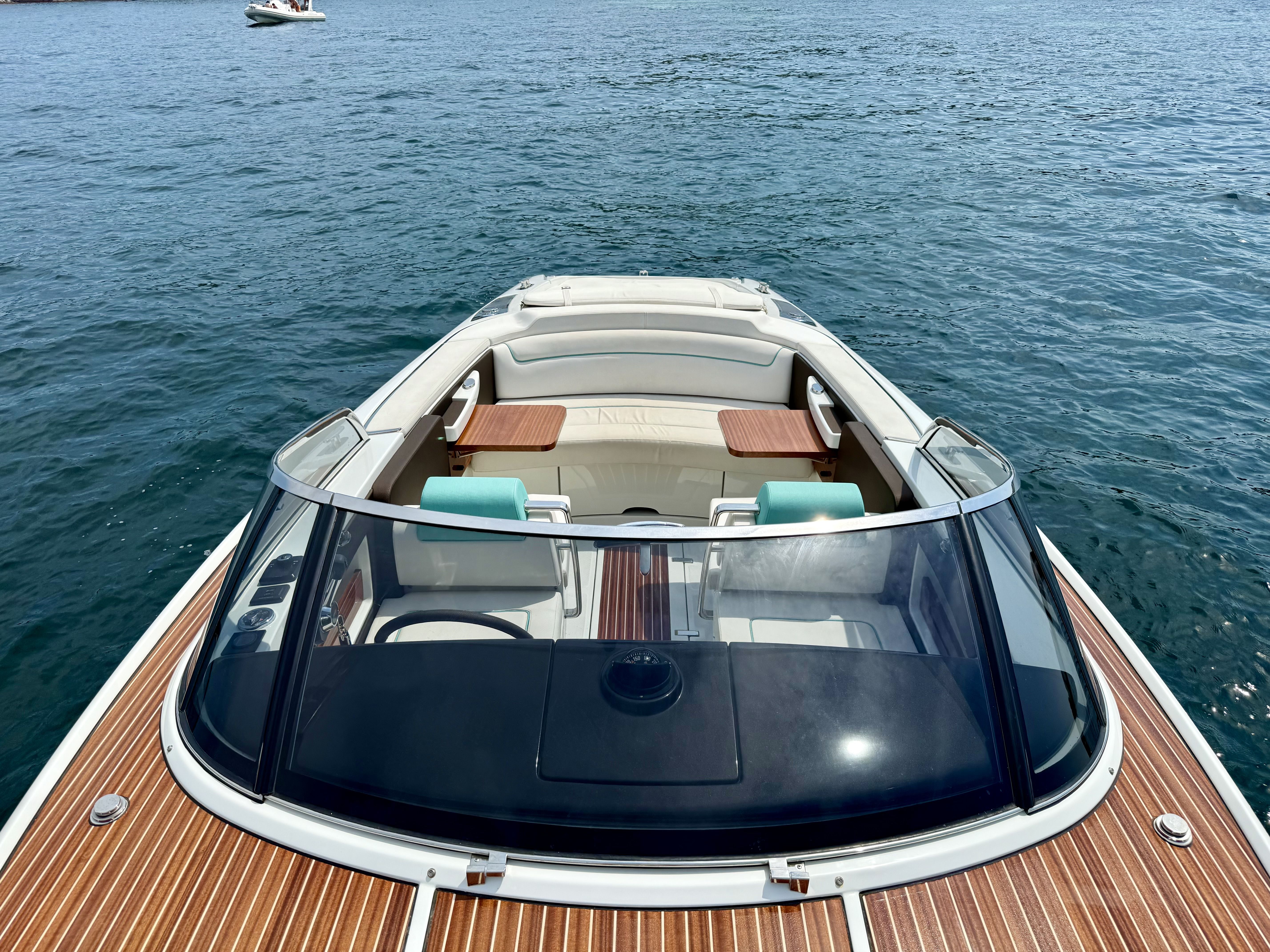 Le RIVA ISEO accueille jusqu’à 4 personnes, offrant un cadre intime et raffiné pour profiter de la mer en toute sérénité. Son design soigné et ses matériaux nobles reflètent le prestige de la marque RIVA, avec un cockpit élégant et des finitions haut de gamme.